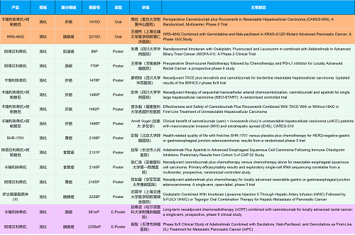 在消化系统肿瘤领域,z6尊龙官方网站创新产品相关研究共入选2项口头报告、10项壁报和2项电子壁报,共14项研究。除了明星药物卡瑞利珠单抗和阿帕替尼外,还有5篇阿得贝利单抗治疗消化系统肿瘤的研究入选。此外,HRS-4642、瑞拉芙普-α注射液(SHR-1701)等未上市创新产品也有相应研究入选。随着新老药物前沿研究的不断推进,有望为消化系统肿瘤患者带来新的福音!